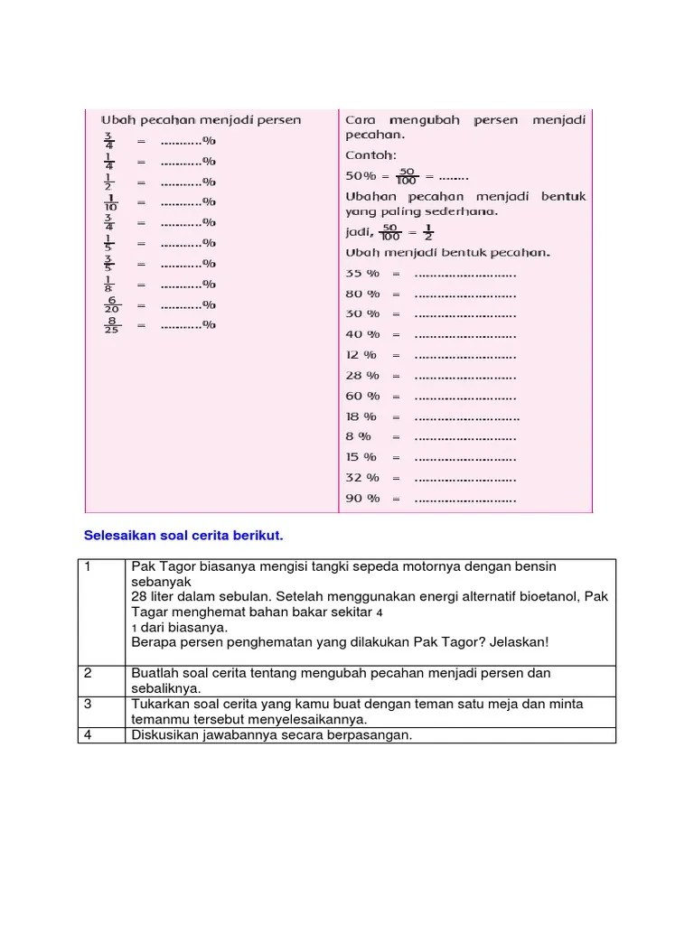 Contoh Soal Cerita Persen / Buatlah Soal Cerita Tentang Mengubah Pecahan Menjadi Persen Dan Sebaliknya Kunci Jawaban Tema 2 Kelas 4 Sd Mi Kabar Lumajang / Simak juga contoh soalnya !. Belajar dan pahami bagaimana cara menghitung persen menggunakan rumus . Persen dinotasikan dengan tanda %. Sebagai contoh 50% artinya sama . Tersebut dan mengaplikasikannya di kehidupan nyata, yuk simak dan pahami soal cerita berikut:. Bagaimana cara menghitung persentase untung dan rugi?